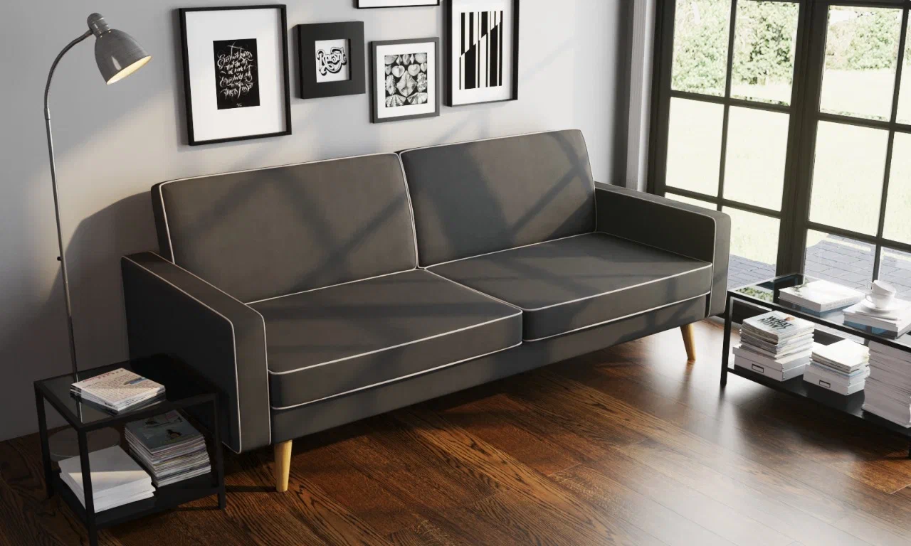 Диван поставляется в разобранном виде, на месте требуется установка опор и подлокотников.