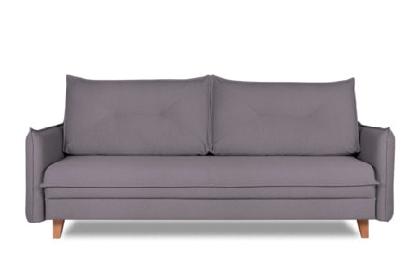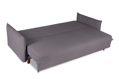 Механизм FLIP-OUT образует спальное место вдоль дивана и трансформируется без риска повредить напольное покрытие. Механизм прочен и прост в эксплуатации. Он предназначен для ежедневного использования. В основании спального места два одинаковых мягких элемента, спинка и сиденье, состоящие из независимых пружинных блоков, что образует ровную поверхность, идеально подходящую для сна. Для того, чтобы разложить диван нужно снять подушки спинки, затем, взявшись за низ передней части дивана, легким движением вперед выдвинуть сиденье на себя и аккуратно опустить его на пол. На освободившееся место опустить спинку.