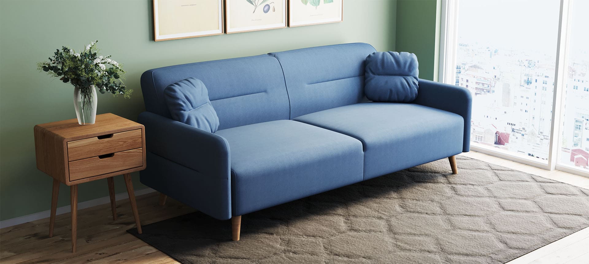 Простой в использовании механизм трансформации Relax, одним движением превращает диван в комфортную кровать со спальным местом 1140×1900 мм, или в место для отдыха, с откидывающейся в 2 положения спинкой. Обивочный материал — тактильно приятная, износостойкая ткань велюр. Стильные деревянные опоры из натурального бука высотой 170 мм. Высота сиденья — 420 мм.