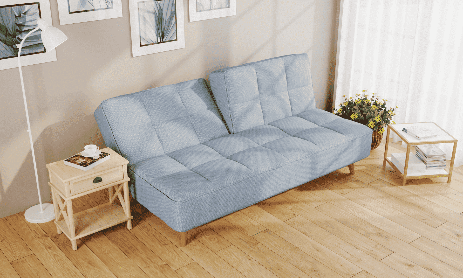 Простой в использовании механизм трансформации Relax, одним движением превращает диван в комфортную кровать со спальным местом 1930×1000 мм, или в место для отдыха, с откидывающейся в 2 положения спинкой. Обивочный материал — тактильно приятная, износостойкая ткань Велюр. Стильные деревянные опоры из натурального бука высотой 120 мм. Высота сиденья — 430 мм.