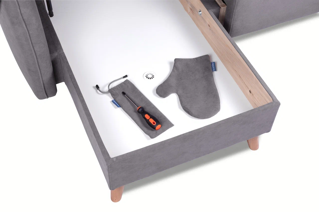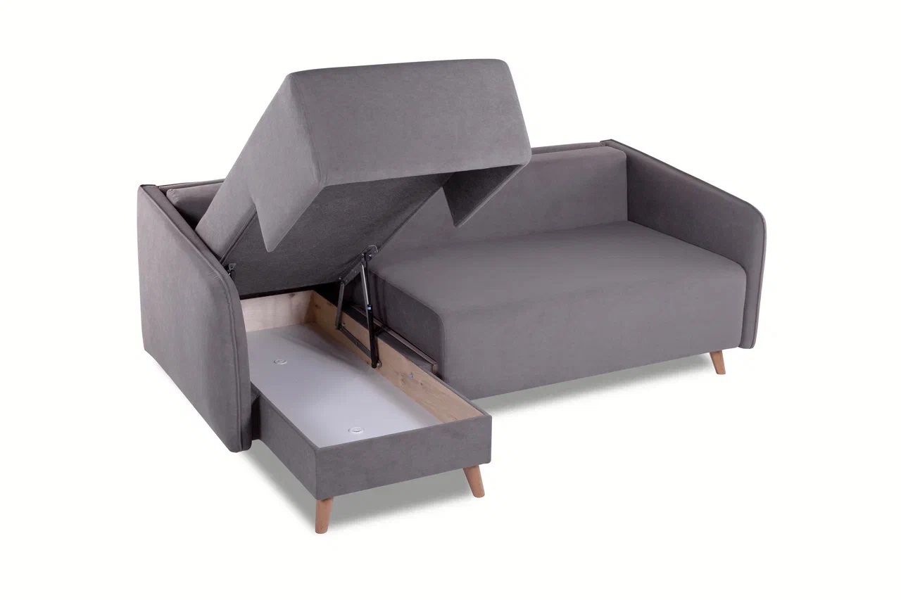 Кроме комфорта и удобства, диван Lila ottoman по-скандинавски функциональный. Двухсекционная зона внутри дивана с микропроветриванием отлично подходит для хранения белья или мелочей. Качественная отделка из обработанной фанеры и белого ДСП сохранит внешний вид вещей в отсеке для хранения.