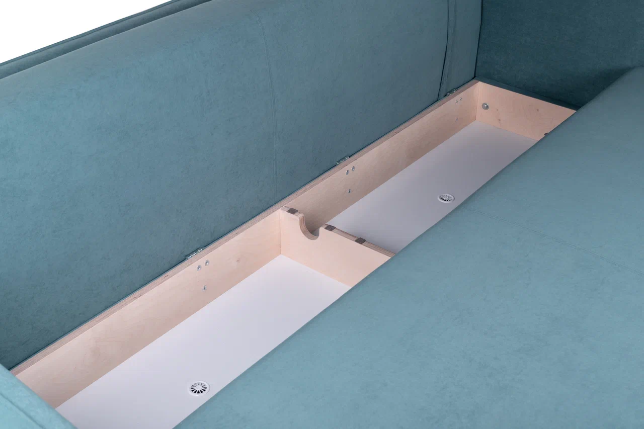 Кроме комфорта и удобства диван Lila по-скандинавски функциональный. Двухсекционная зона внутри дивана с микропроветриванием отлично подходит для хранения белья или мелочей. Качественная отделка из обработанной фанеры и белого ДСП сохранит внешний вид вещей в отсеке для хранения.