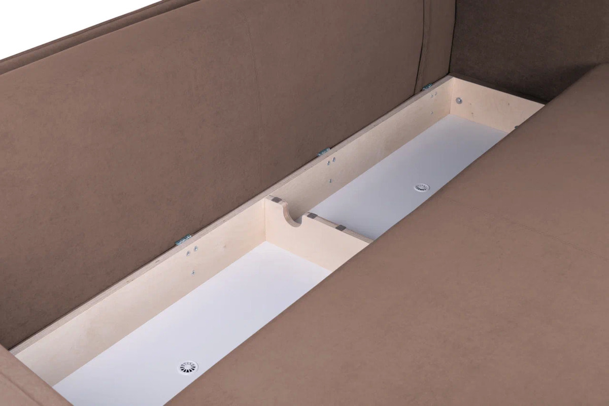 Кроме комфорта и удобства диван Lila по-скандинавски функциональный. Вместительный бельевой короб с микропроветриванием внутри дивана отлично подходит для хранения белья или мелочей. Механизм FLIP-OUT образует спальное место вдоль дивана и трансформируется без риска повредить напольное покрытие. Механизм прочен и прост в эксплуатации. Он предназначен для ежедневного использования. В основании спального места два одинаковых мягких элемента, спинка и сиденье, состоящие из независимых пружинных блоков, что образует ровную поверхность, идеально подходящую для сна.