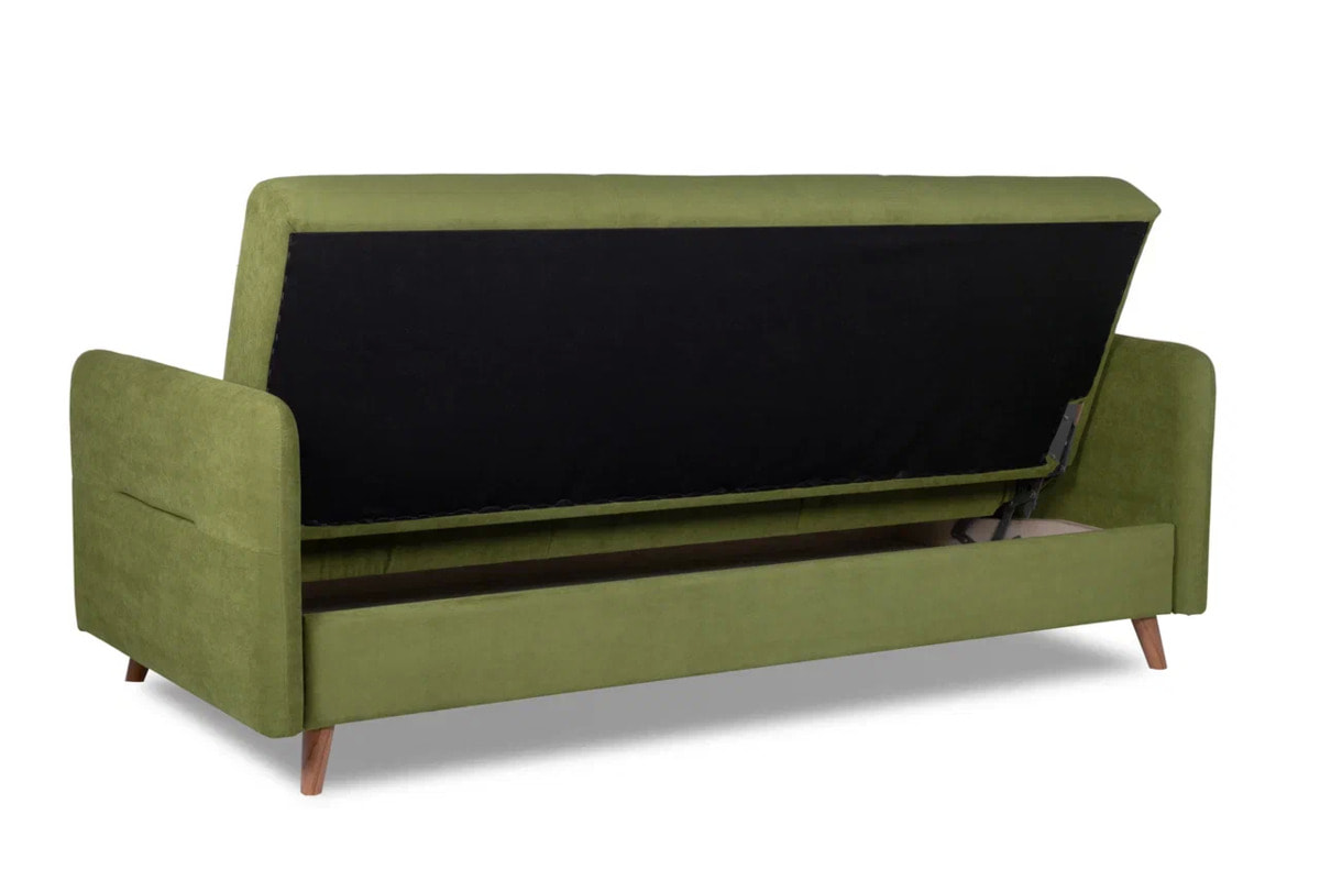 Вместительный бельевой короб внутри дивана с микропроветриванием отлично подходит для хранения белья или мелочей. Продуманная конструкция сиденья с мягким валиком под колени и удобным выступом для легкой и удобной трансформации дивана.