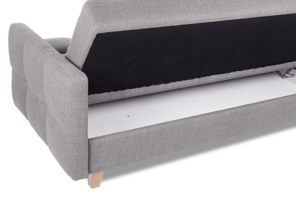 Вместительный бельевой короб внутри дивана с микропроветриванием отлично подходит для хранения белья или мелочей. Продуманная конструкция сидения с мягким валиком под колени и удобным выступом для легкой и удобной трансформации дивана.